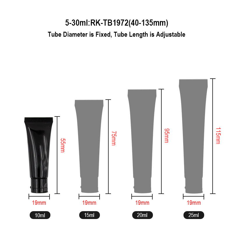 이 크림 튜브는 직경 19mm, 용량 10ml~25ml로 소형 화장품 샘플에 적합합니다.